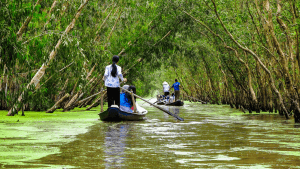 - 10:00 Đến tham quan KDL Gáo Giồng, Quý khách ngồi xuồng ba lá qua những lung sen thơm ngát, vô rừng tràm tham quan nơi các loài chim cò, trích, diệt, cồng cộc, le le, giang sen, cu xanh… tụ hội về kiếm ăn và làm tổ nằm trong khu thiên nhiên rộng 1.657ha thuộc Đồng Tháp Mười. Quý khách tự do vui chơi mua sắm những đặc sản trong KDL (chi phí tự túc).